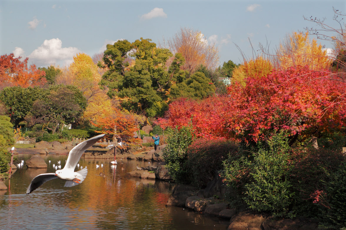 隅田川沿いにある公園で、墨田区側の左岸は向島1、2、5丁目の面積約8万平方メートルの広さを誇ります。春には屈指の桜の名所となり、夏には隅田川花火大会が行われます。公園内の庭園は水戸徳川邸内の池等、遺構を利用して造られています。関東大震災後で屋敷が全壊するまで代々ここに住んでいたと伝えられますが、その後隅田公園の区域に取り込まれ、日本庭園へ姿を変えました。