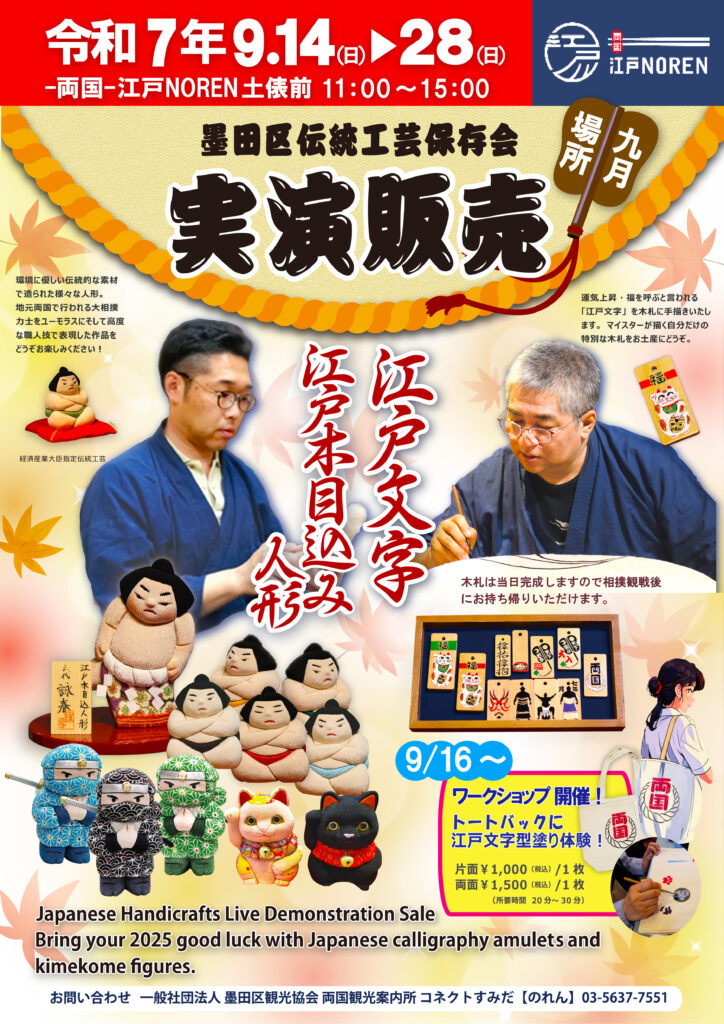墨田区伝統工芸保存会による「実演販売」が9月14日から28日まで、両国の「江戸NOREN」(墨田区横網1)土俵前広場で行われます。時間は11時から15時です。