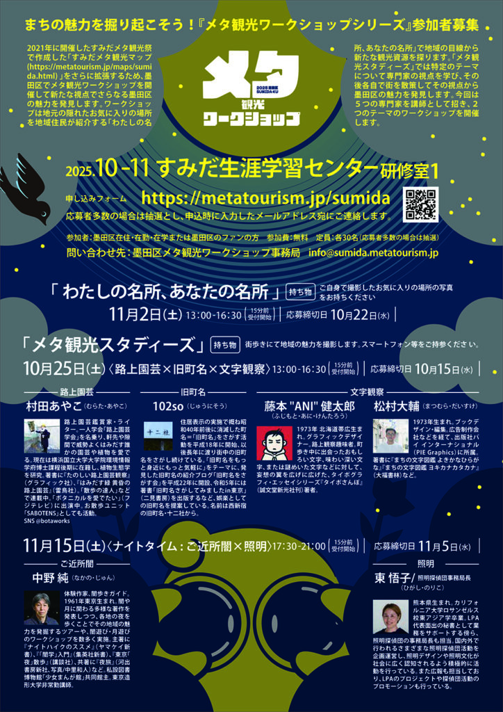 - 問い合わせ先:墨田区メタ観光ワークショップ事務局 info@sumida.metatourism.jp