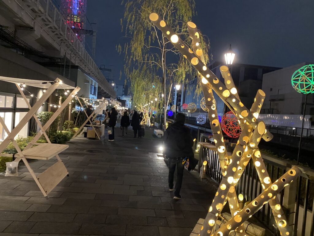 竹を素材にしたあかりの演出とマルシェを楽しめるイベントです。東京ミズマチの北十間川沿いテラスに竹あかりが並び、夕暮れ以降は幻想的な雰囲気に包まれます。飲食、雑貨販売、ワークショップなどのブースも出店し、散策とあわせて楽しめます。30日はタップスターが注ぐチェコの生ビール、31日は海の宝石箱づくりワークショップなど、日替わり企画も予定しています。
